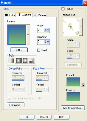 Scrap Kit - a dozi’s summer kit (mixed) - öffnen. Ein paar der dekorativen Elemente auswählen und hübsch drapieren auf unserem Bild.(kopieren - einfügen) Ich habe die meisten der Elemente auf 66-70% verkleinert. Genug dekoriert? - dann fügen wir unseren Text hinzu. Ich habe den font Martina Regular verwendet, Größe 72 Vordergrundfarbe: #7FC667 - Hintergrundfarbe: Gradient aus #7FC667 und #3265A6 (Einstellungen s. Screenshot) |