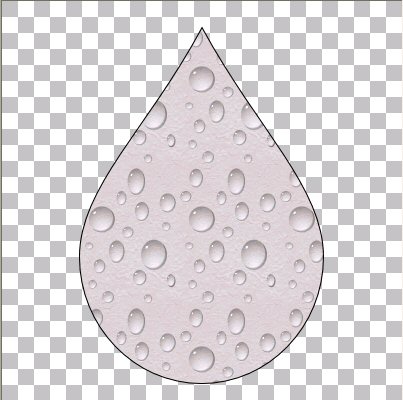 Als erstes öffne ein leeres Blatt - 400x400 transparent. Neue Ebene einfügen - Formenwerkzeug - Tropfen. Damit ziehst Du einen Tropfen auf, der die Leinwand gut ausfüllt. Vordergrundfarbe: Schwarz - Hintergrundfarbe: ein Muster Deiner Wahl. (Häkchen bei "create as vector" herausnehmen) |