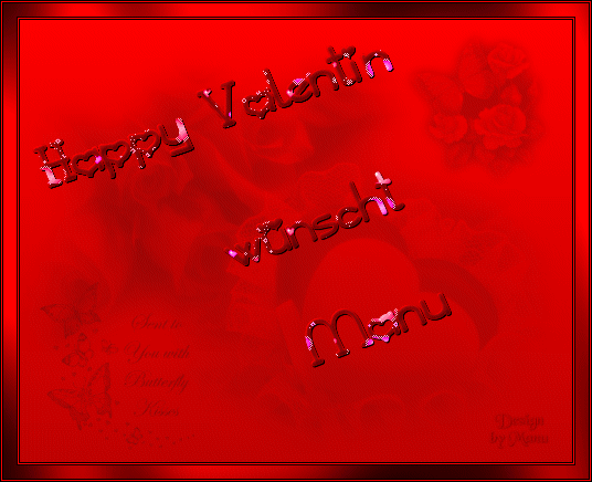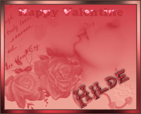 Unsere Hintergrundebene duplizieren wir auch in dergleichen Anzeil wie die Textebenen. Dann ordnen wir die Ebenen noch in der richtigen Reihenfolge an. Immer eine Hintergrundebene unten, eine Textebene darüber. Bei allen Ebenen die Sichtbarkeit ausschalten. Von unten beginnen immer 2 Ebenen sichtbar schalten - eine Hintergrundebene und eine Textebene - sichtbar verbinden. Sichtbarkeit wieder ausschalten. Ran an die nächsten beiden Ebenen. Sind alle Ebenen paarweise verbunden, alle Ebenen wieder sichtbar schalten. Abspeichern als .psp-Datei und ab in den Ani-Shop. Dort nur noch alle Einzelbilder selektieren, Bildeigenschaften (re. Maustaste) auf 20 setzen. Abspeichern - und nun ist auch unsere Animation fertig! Hört sich komplizierter an, als es ist - die Meisten haben bestimmt schon einen Ebenen-Workshop mitgemacht, also sollte das Ganze kein Problem darstellen. Und ich bin überzeugt, 1x mit floaties gearbeitet - für immer davon begeistert! Und nun bin ich schon richtig gespannt auf Eure Ergebnisse! - “HAPPY VALENTINE!”